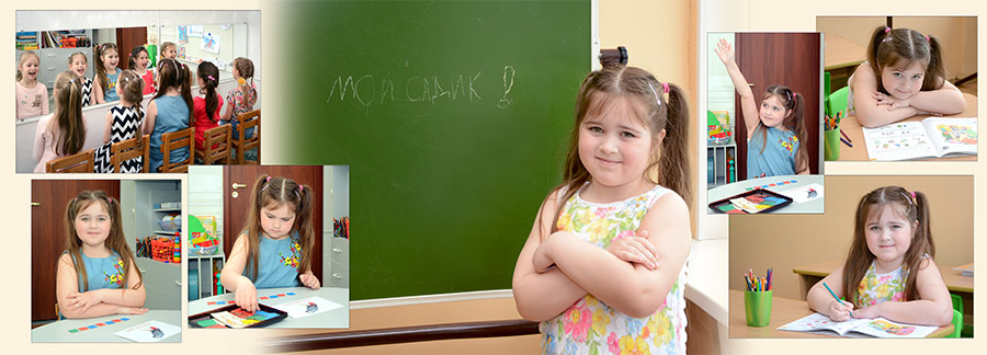 Фотокнига свободного дизайна. Развороты с 1 по 6 верстаются только из фотографий, выбранных родителями. Примерное количество фотографий для этих разворотов 40 – 50 шт.