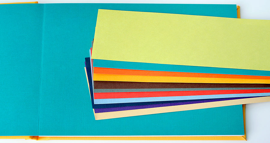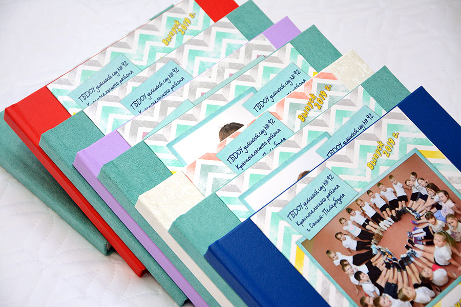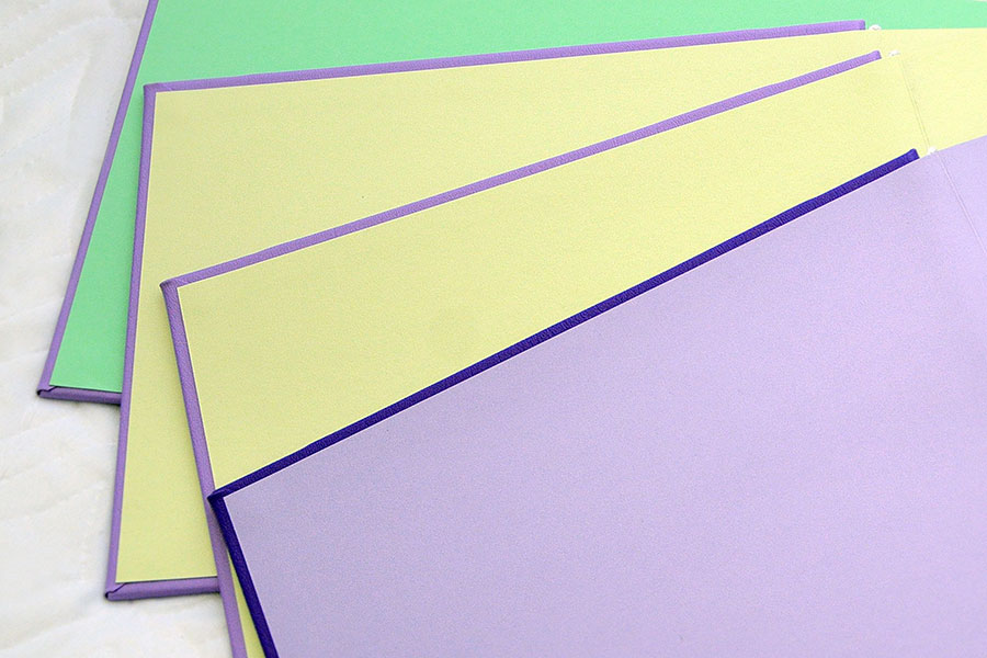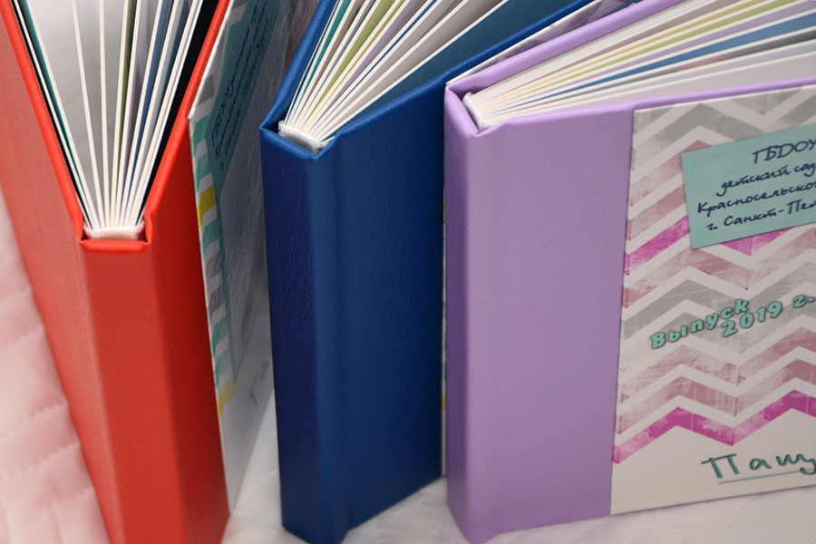 Для оформления обложки доступно более 20 видов/цветов переплётного материала.